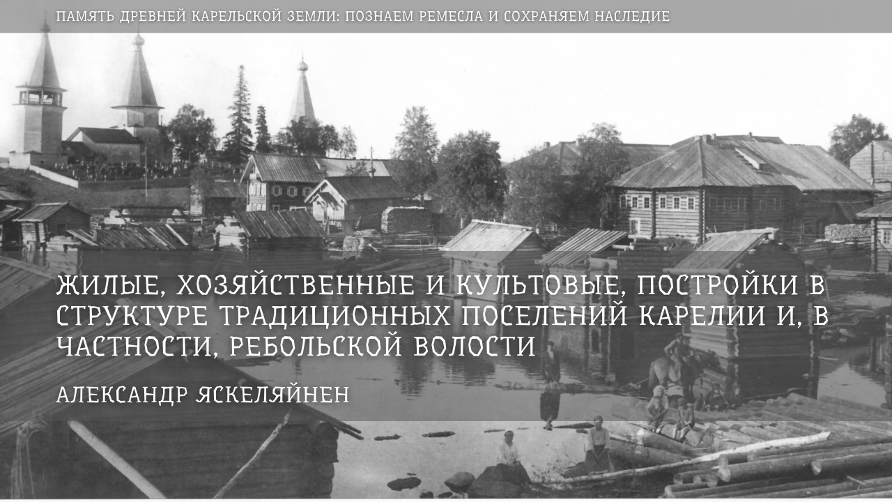 На лекции мы познакомимся с основными типами и причинами формирования объемно-планировочных структур поселений Карелии, включая Беломорскую Карелию и Ребольскую волость, а также с местом и ролью культовых, жилых и хозяйственных построек в структуре поселений.