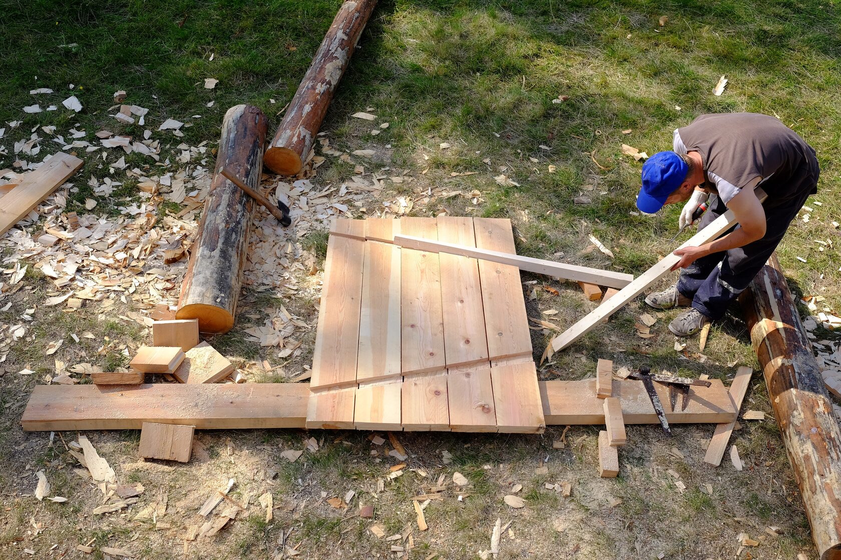 На снимке: Изготовление двери для амбара Поттоевх в д. Гафостров. Школа технологий Калевалы, 2019 г. Фото: © Константин Петров, Фонд «Траектория».