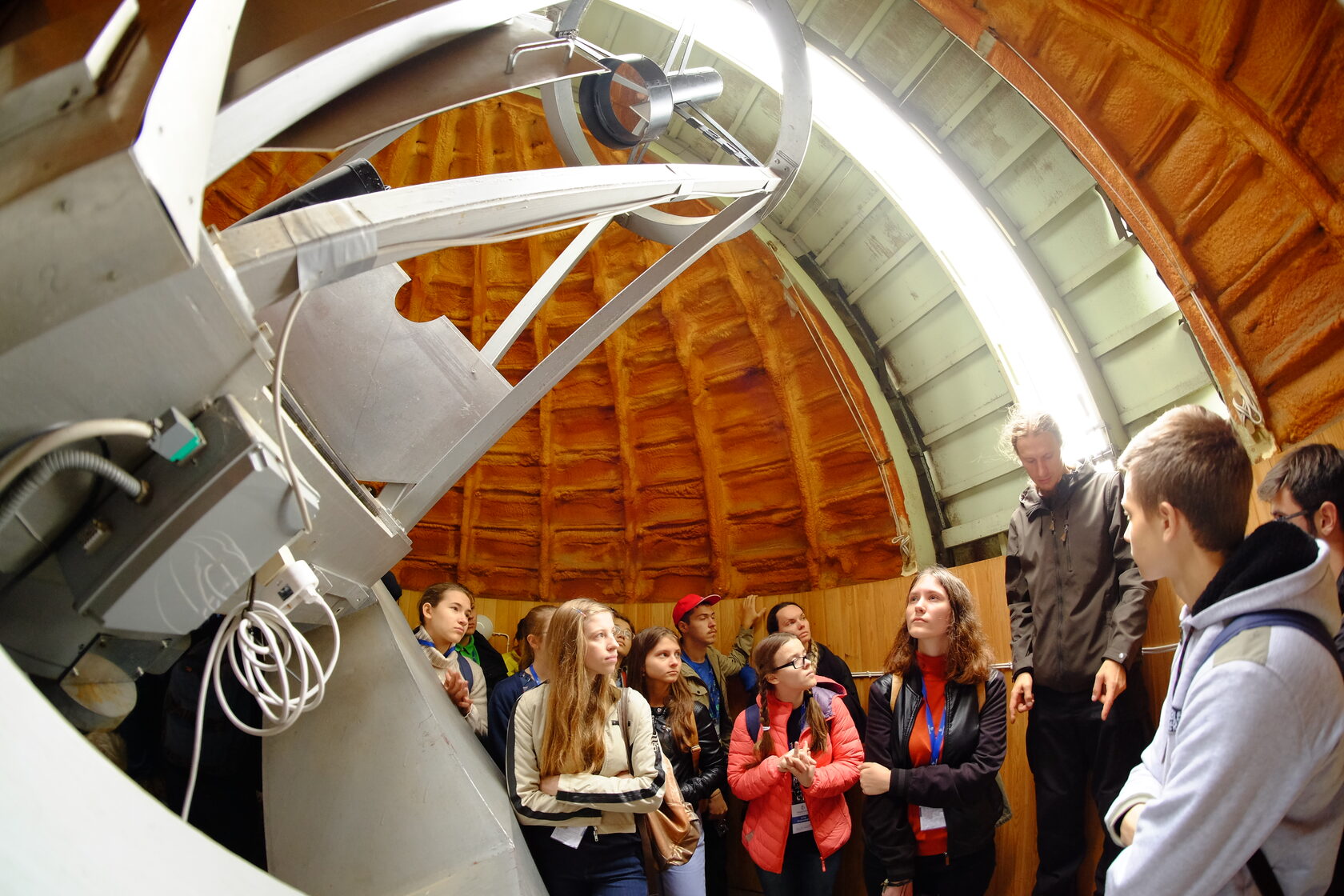 Основная иллюстрация: Студенты Астрофизической школы «Траектория» знакомятся с научным оборудованием Обсерватории Туорла, Финляндия. В башне 1,03 м рефлектора Dall-Kirkham — крупнейшего оптического телескопа Финляндии. Фото: Константин Петров, 2018 г.