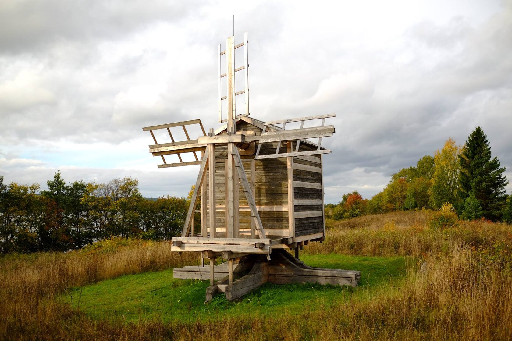 - Мельница ветряная из деревни Гафостров в экспозиции сектора «Северные карелы» Музея-заповедника «Кижи», 29 сентября 2015 г. Автор фото: © Константин Петров.